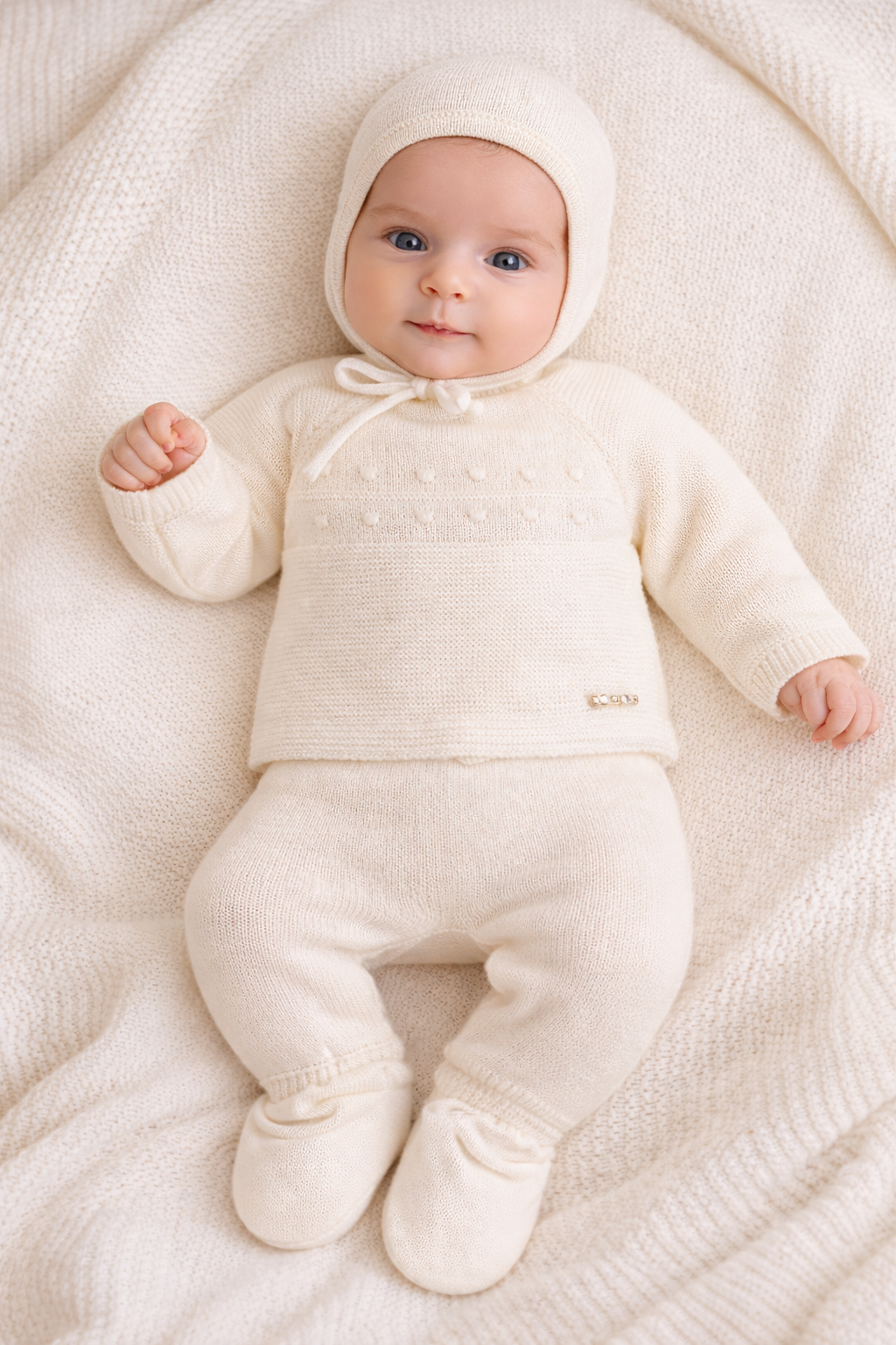 Disponemos de los complementos necesarios para vestir a  los pequeños reyes de la casa. Encuentra nuestras chaquetas de hilo, ideales para acompañar los vestidos de bebe y vestidos de niña, así como los conjuntos para niño.