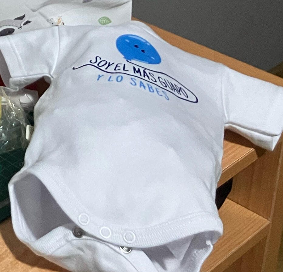 Este Body de algodón es una genial idea para un regalo original por la cantidad de frases divertida que os proponemos, aunque siempre puedes personalizarlo a tu gusto con otra frase o el nombre del bebé. Puedes elegir modelo de manga larga o corta.