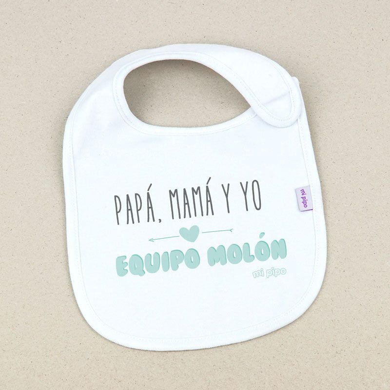 Babero Divertido Papá, Mamá y Yo Equipo molón