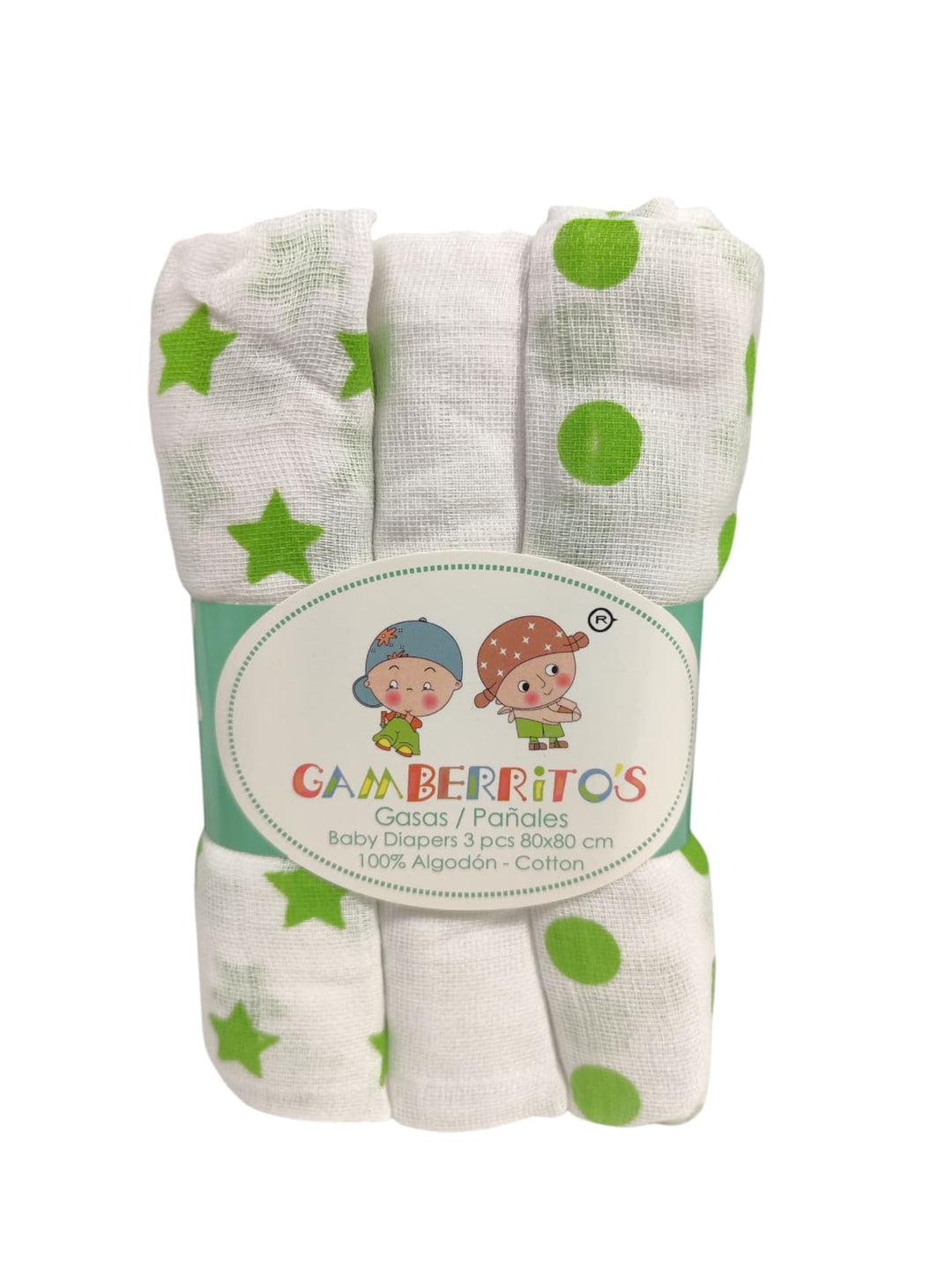 Pack de 3 Gasas/Muselinas Estrellas y Lunares Verde