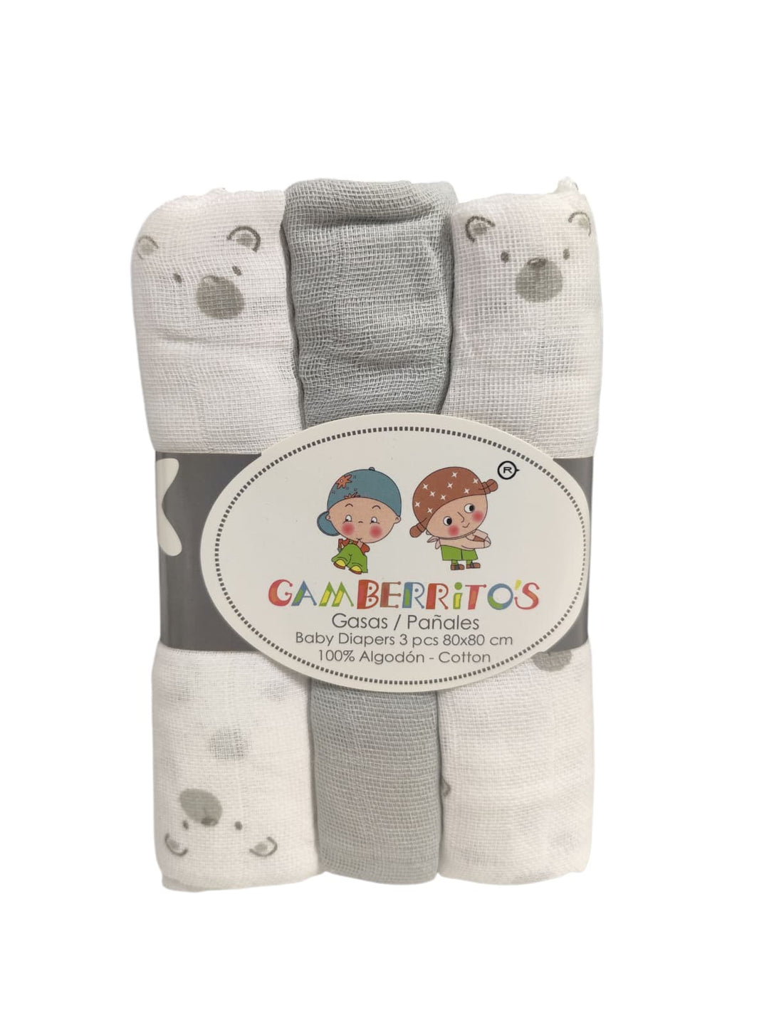 Pack de 3 Gasas/Muselinas Gris Osito