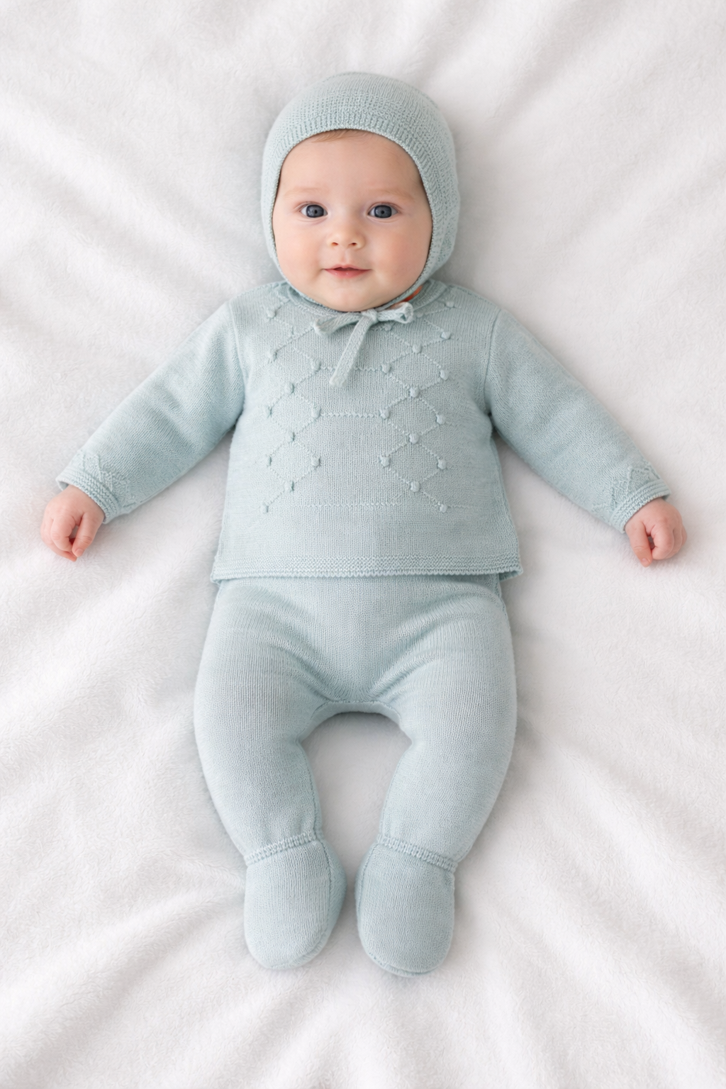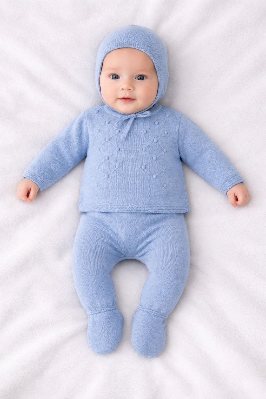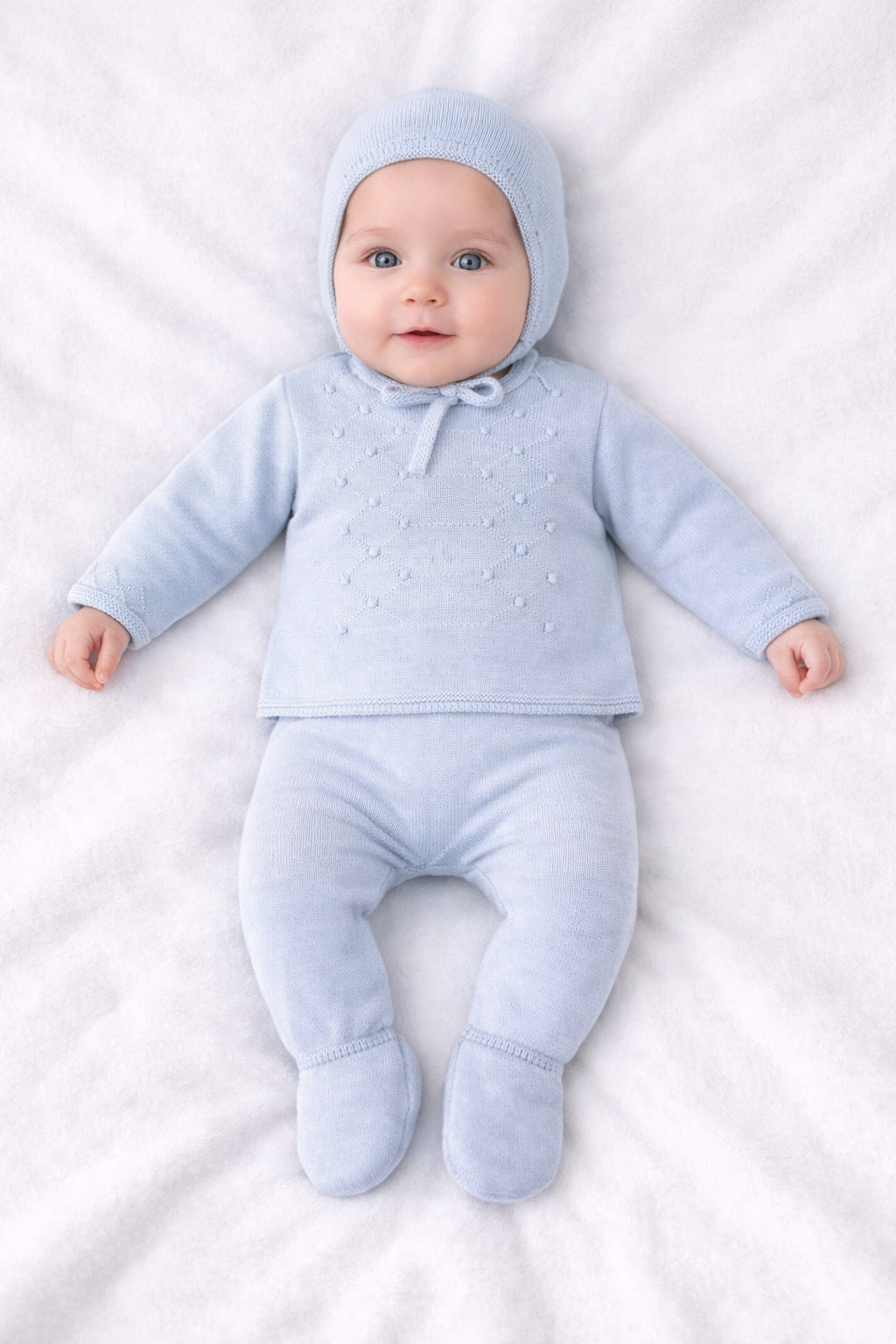 Conjunto Bebé Hilo con Polaina y Capota Celeste