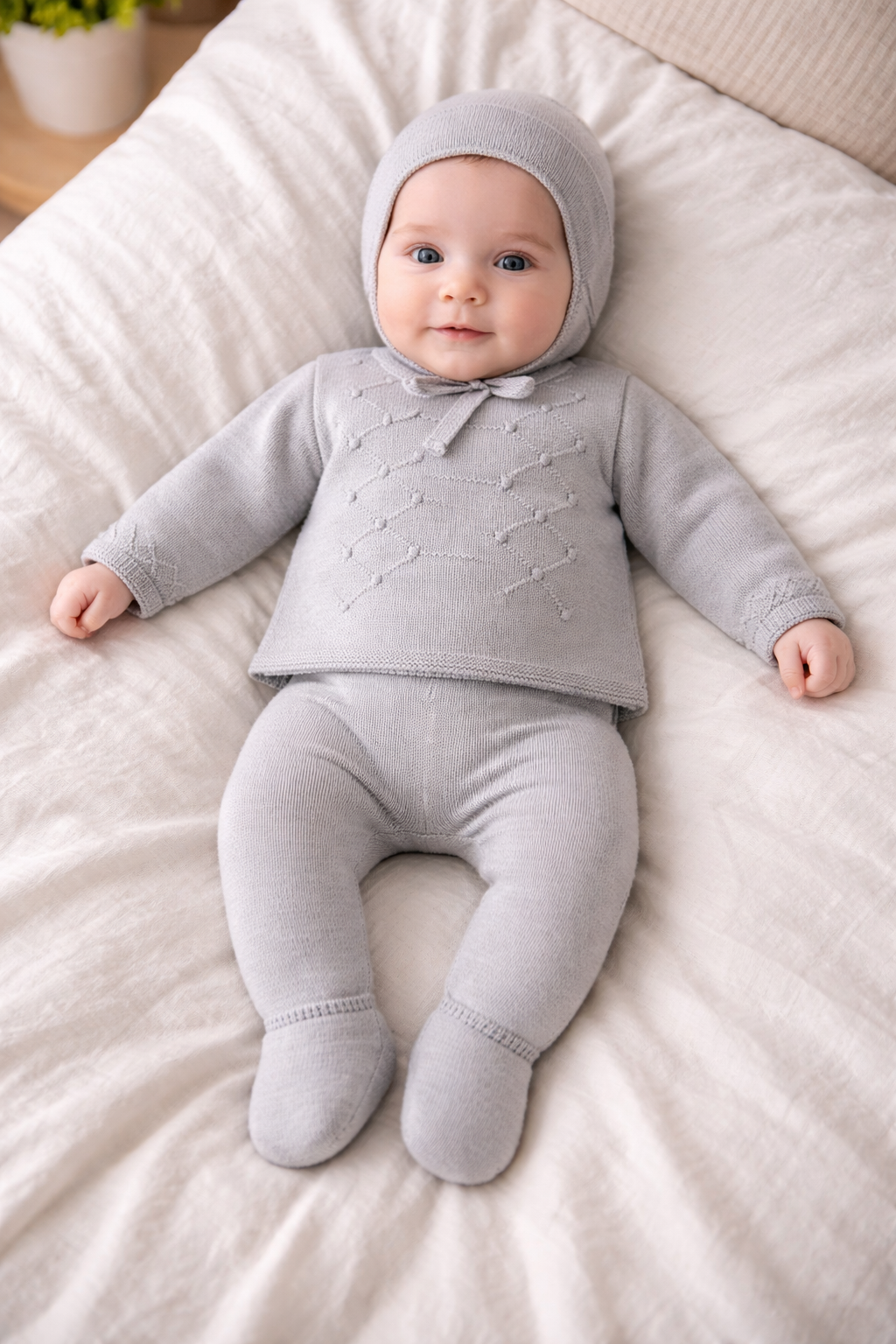 Conjunto Bebé Hilo con Polaina y Capota Gris