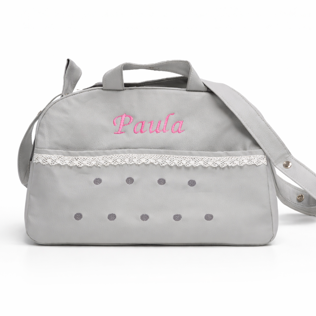 Bolso Maternal Personalizado Modelo Kona Gris Celeste