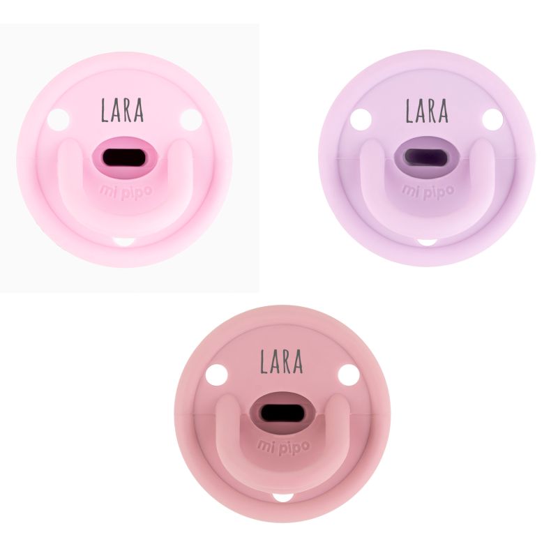 Los chupetes personalizados están disponibles en diferentes formas y diseños, y se pueden personalizar con diferentes tipos de letra y colores. El nombre del bebé se imprime en la superficie del chupete con tintas seguras para alimentos a través de técnicas de impresión de alta calidad.